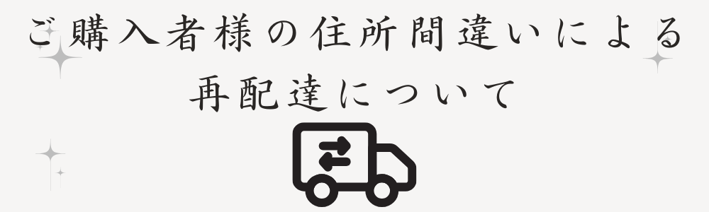 ご購入者様による住所間違いが原因でご返送された場合、再発送にかかる送料・手数料はお客様のご負担となります。